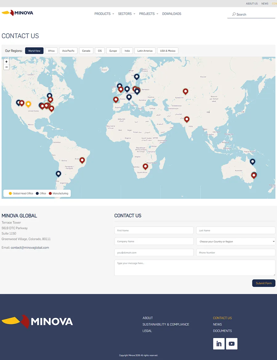 Minova Global needed a way to present their worldwide presence - offices, manufacturing sites, and head office - in a single, clear view on their website. With locations spread across multiple regions, a static list or generic embed wasn't going to communicate the scale of the organisation. They needed something that felt considered and on-brand, not an out-of-the-box afterthought.